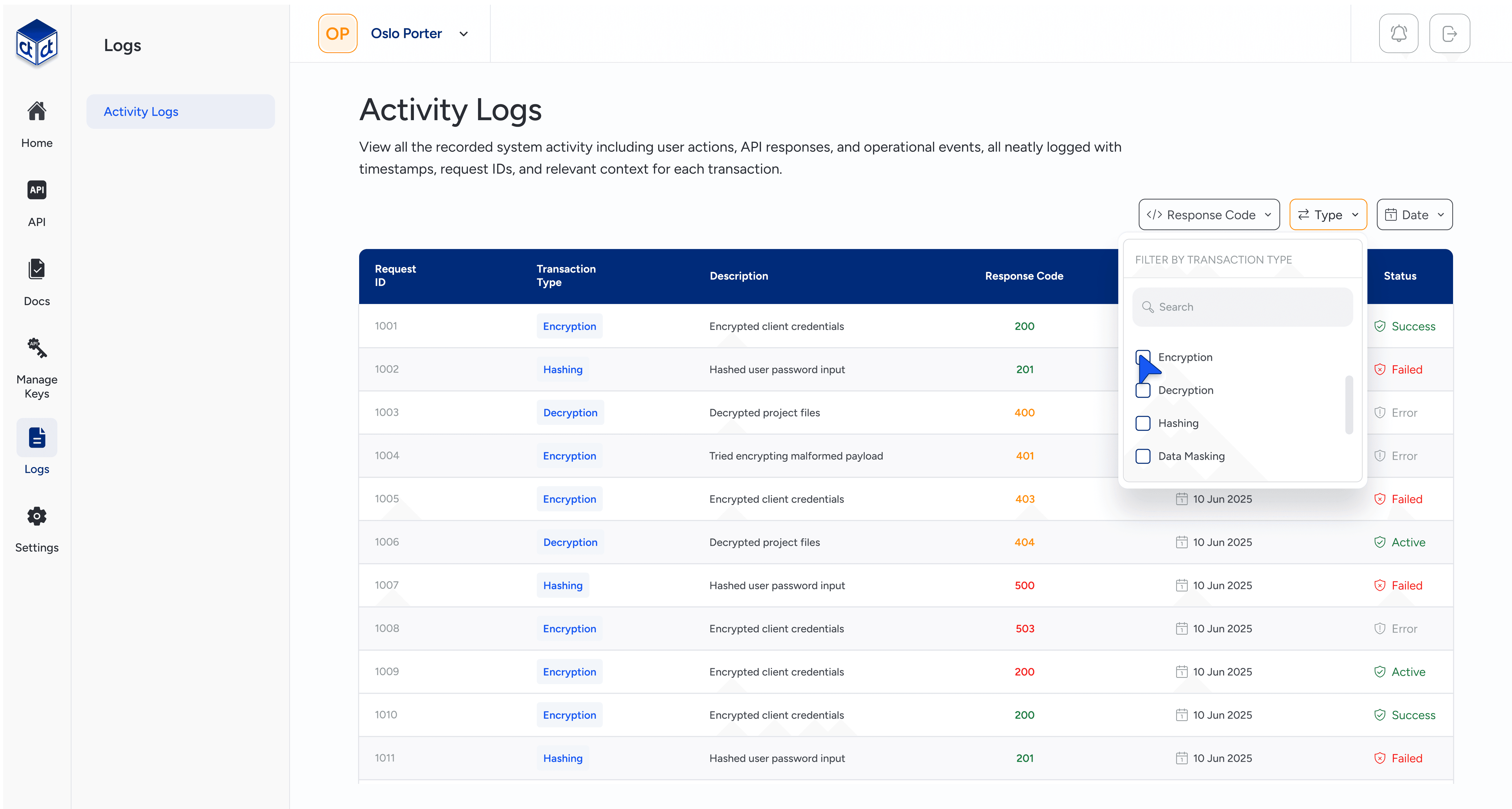 Every time CipherTEA encrypts, decrypts, masks, or grants access, it logs the event, automatically, and in full detail. These records aren’t optional, they’re fundamental. Timestamped, tamper-proof, and built for scrutiny, they give teams the confidence to know what happened, when, and why.